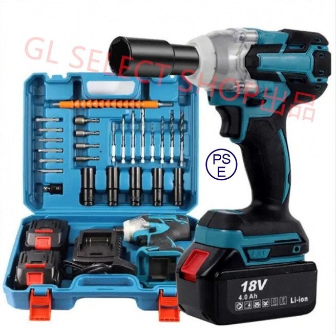 - 電動インパクトレンチ 450N.m 多点セ ット ー1台4役タイヤ交換 バッテリー併用電動ドリルドライバー セット 電池1本 マキタバッテリー対応