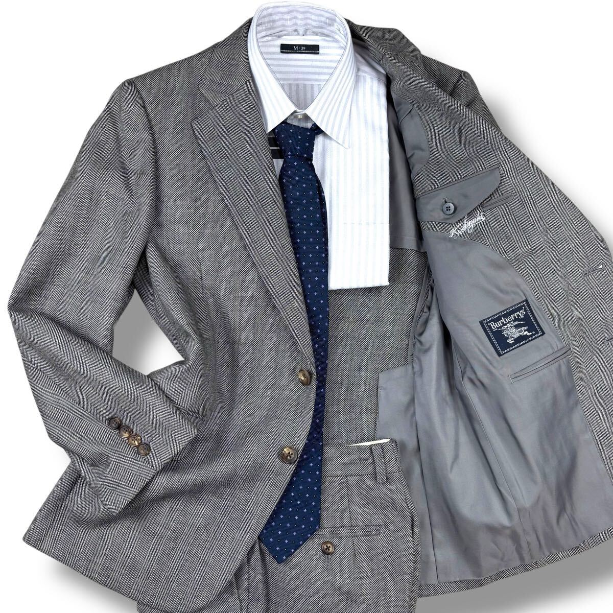> 1円 良品 バーバリー BURBERRY スーツ セットアップ 2B 背抜き ヘリンボーン ウール メンズ グレー A3 M~S
