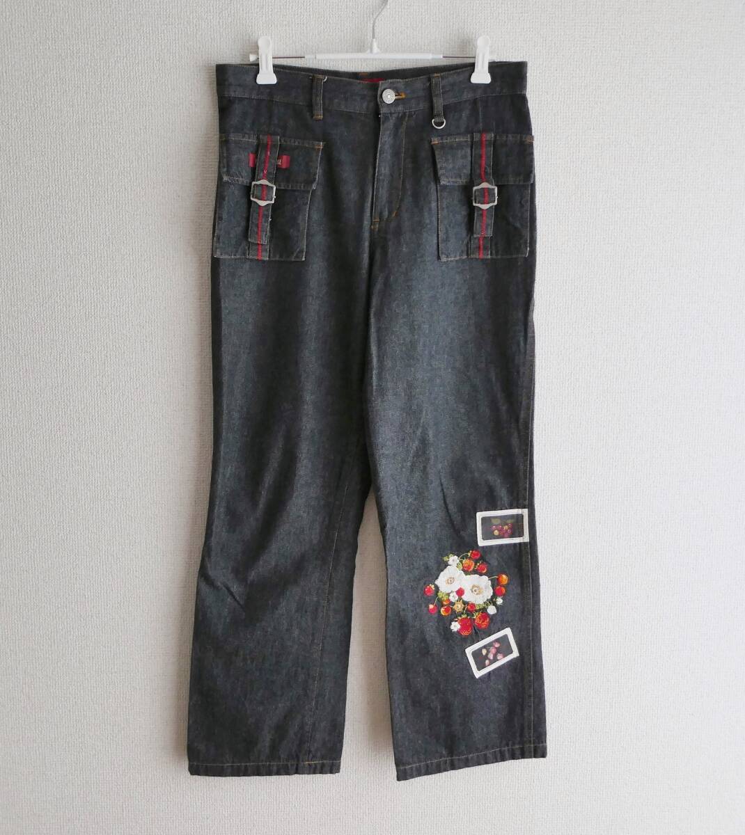 - PINK HOUSE ピンクハウス 苺刺繍 ブラックデニムパンツ サイズL