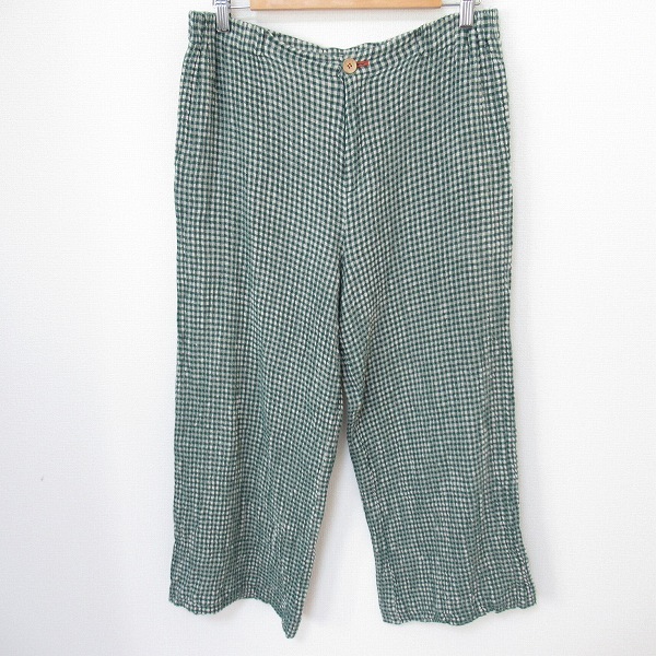 【ブランド】HAYAMA TIME ハヤマタイム【アイテム】パンツ【表記サイズ】F【平置き実寸】ウェスト:約 41cm〜(ゴム)股上:約 32cm股下:約 59cmわたり幅:約 29cm裾幅:約 28cm【状態】目立った傷や汚れなし【備考】-【色】グリーン系【素材】画像をご参照ください。★当店の商品はすべてリユースアイテムとなります。特質上、些細なダメージは記載しておりませんので着用に問題のない使用感、着古した雰囲気などはご了承くださいませ。キーワード/アクイール/古着/used/ビンテージ/ヴィンテージ/レトロ/昭和/クロップド/麻/