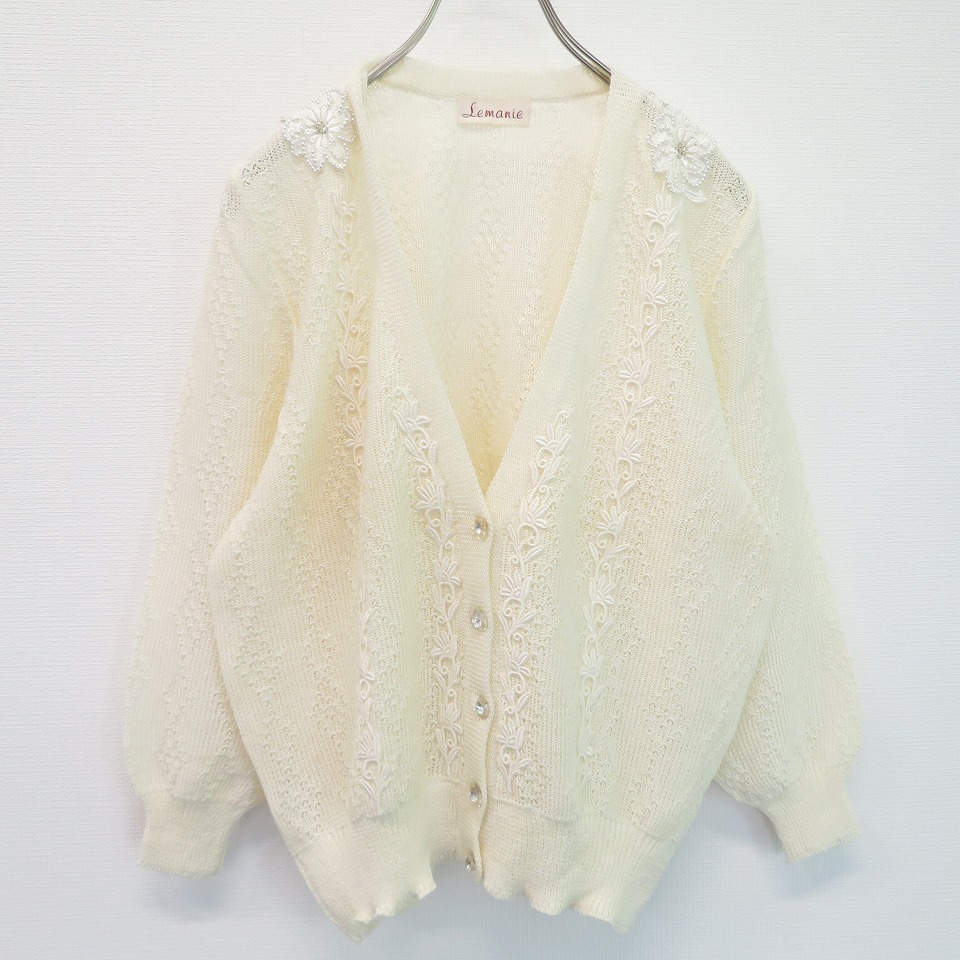 【ブランド】Lemanie【アイテム】カーディガン【表記サイズ】- M〜Lサイズくらいの方におすすめです。【平置き実寸】肩幅:約 37cm袖丈:約 53cm着丈:約 56cm身幅:約 53cm【状態】やや傷や汚れあり【備考】左襟部分、凝視程度の汚れあり(画像参照)【色】ホワイト系【素材】画像をご参照くださいキーワード/アクイール/古着/used/ビンテージ/ヴィンテージ/昭和レトロ/リネンニット/麻/鍵編み/羽織り/サマーニット