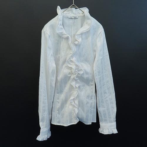 ◎商品名(タイトル):ナラカミーチェ NARACAMICIE シャツ ブラウス 半袖 フリル [a962744]◎ブランド名:ナラカミーチェ (NARACAMICIE)◎アイテム名:シャツ ブラウス 半袖 フリル◎サイズ:?◎性別:レディース◎カラー:白系◎素材:画像をご参照ください◎実寸サイズ:肩幅約 34.5cm・袖丈約 59.5cm・着丈約 58cm・胸囲約 46cm×2◎商品コメント:★当店の商品はすべてリユースアイテムとなります。特質上、些細なダメージは記載しておりませんので着用に問題のない使用感、着古した雰囲気などはご了承くださいませ。◎コンディションレベル:目立った傷や汚れなし◎コンディション備考:-キーワード/アクイール/古着/used/ビンテージ/ヴィンテージ/昭和/レトロ/ホワイト系