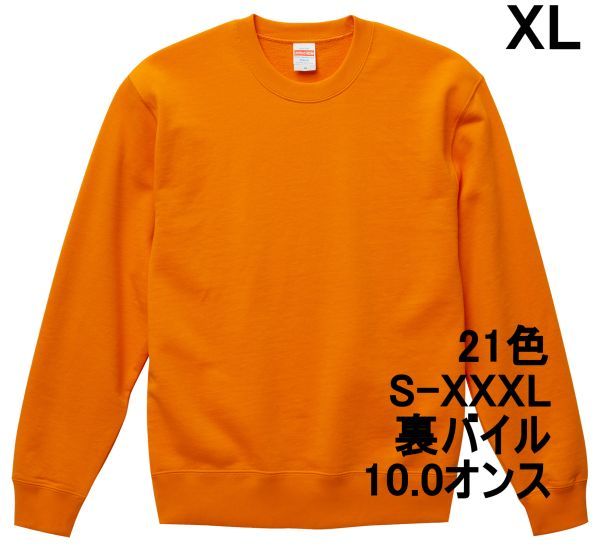 - スウェット XL オレンジ トレーナー 10オンス 裏パイル 無地 定番 シンプル インナー 部屋着 普段着 丸首 クルーネック A635 LL 2L 504401