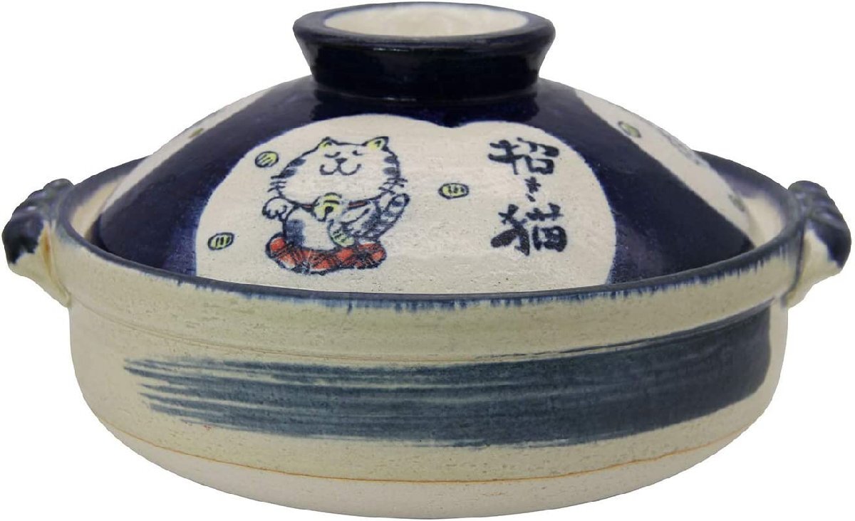 - 耐熱 耐久性を持つ 四日市の伝統工芸品である 萬古焼 土鍋 9号サイズ 4~5人用 直径28.5cm 容量3200ml 蓋にかわいい招き猫 割れにくい