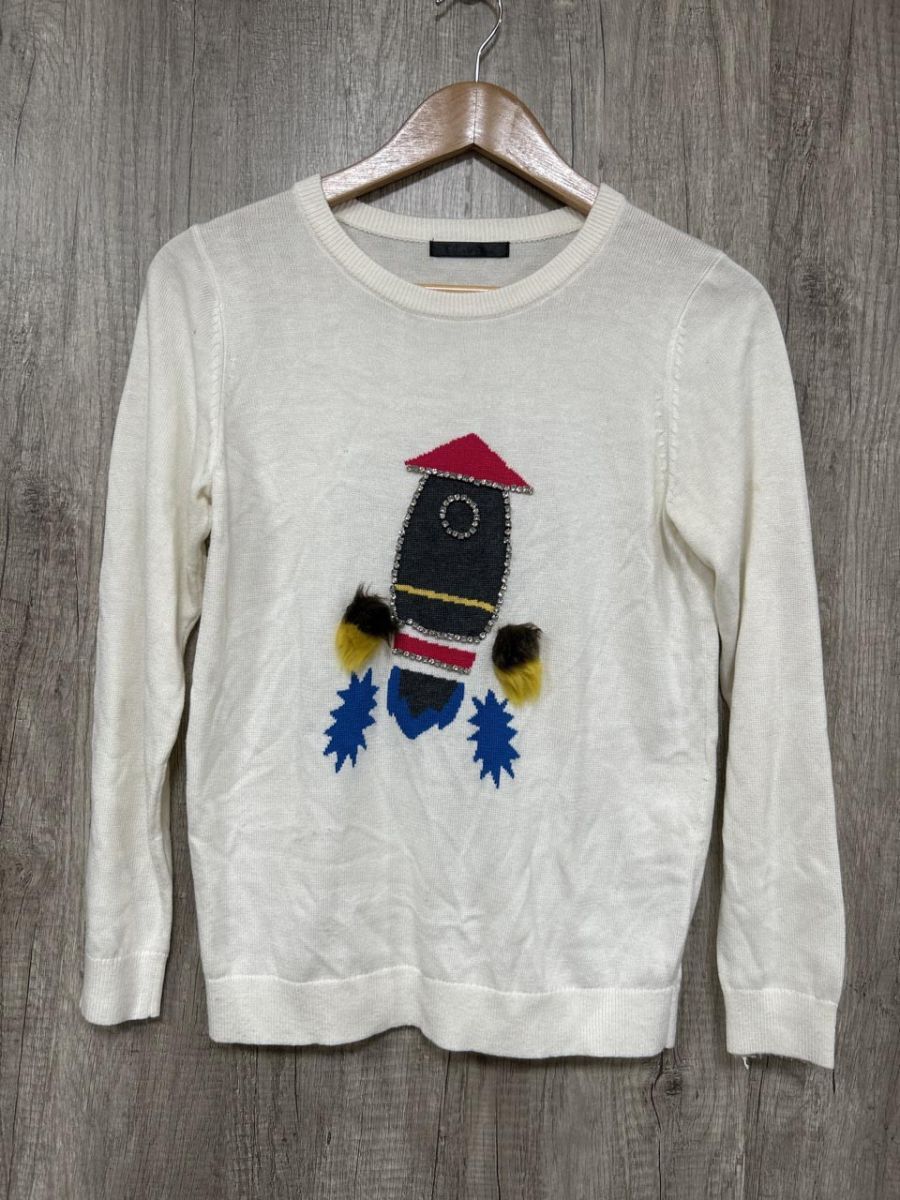 - ネコポスOK Pauline Bleu ポリーヌブロー モチーフニット ロケット ニット セーター sizeF/白 ◆■ レディース