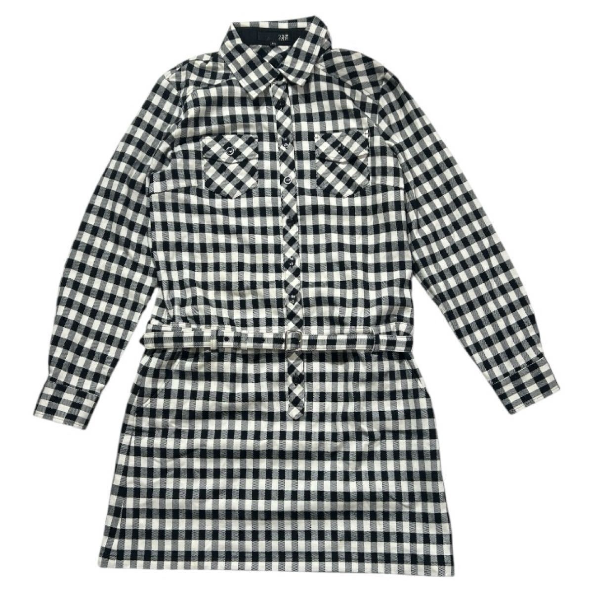 - ■ 23区 SPORT ニジュウサンク スポーツ ■ ギンガムチェック柄 長袖 ゴルフ ワンピース ホワイト×ブラック M~L