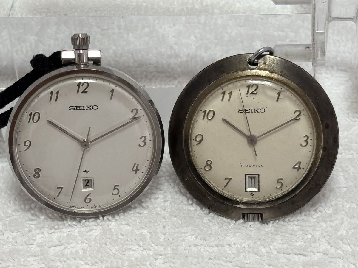 > 【228-25】1円〜【稼働品】SEIKO セイコー 7622-3000 6602-9010 懐中時計 手巻き 2点まとめ デイト ホワイト メンズ 同梱不可