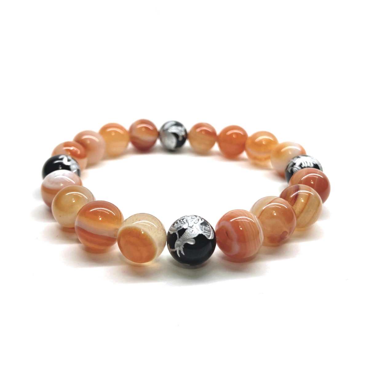 - 10mm 四神獣銀彫オニキス×カーネリアン・サードニクス パワーストーン ブレスレット天然石 開運 青龍 白虎 玄武 朱雀 ☆