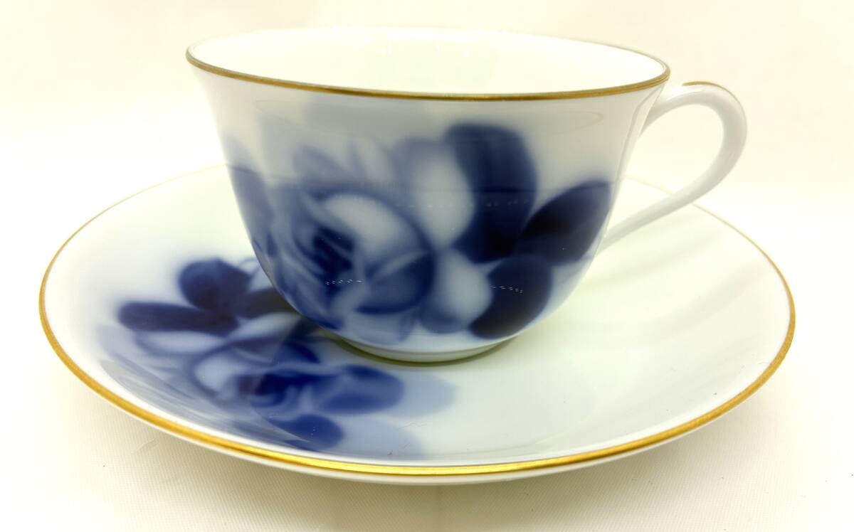 - (SM5085B)皇室御用達 OKURA 大倉陶園 ブルーローズ 1客 カップ&ソーサー 金彩 コーヒーカップ ティーカップ 洋食器 青薔薇