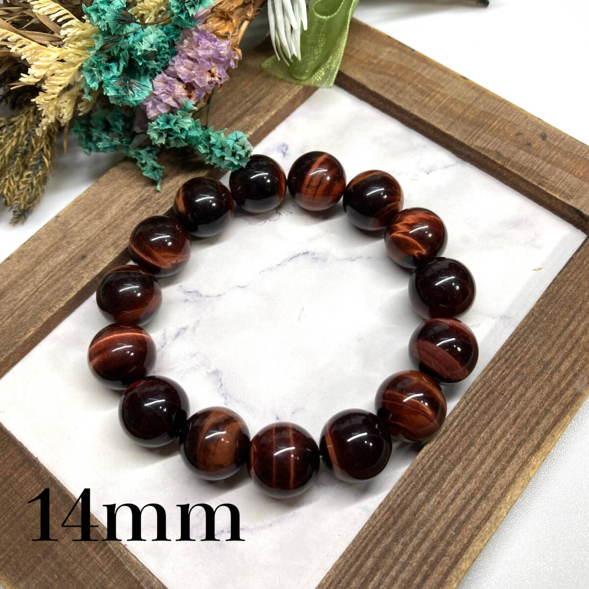 - レッドタイガーアイ パワーストーン ブレスレット 14mm 天然石ブレス (シンプル) 開運 浄化 数珠ブレス メンズ 男性 14ミリ