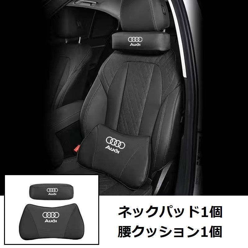 > アウディ ネックパッド 腰クッション 車用 背もたれクッション ネックピロー ヘッドレスト レザー 背当て 通気性 5色選択