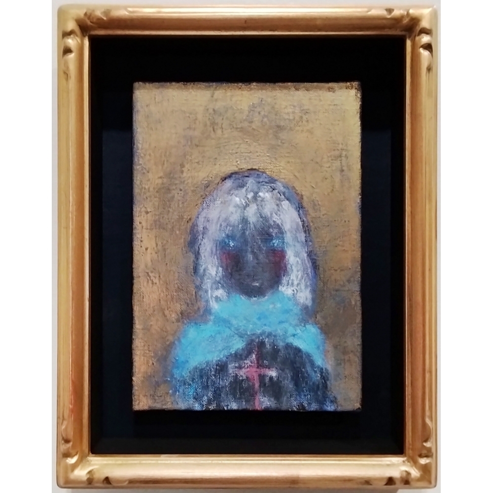 - 内野隆文 北の教会 絵画 サムホール 現代アート 人物画 肖像 額縁 真作
