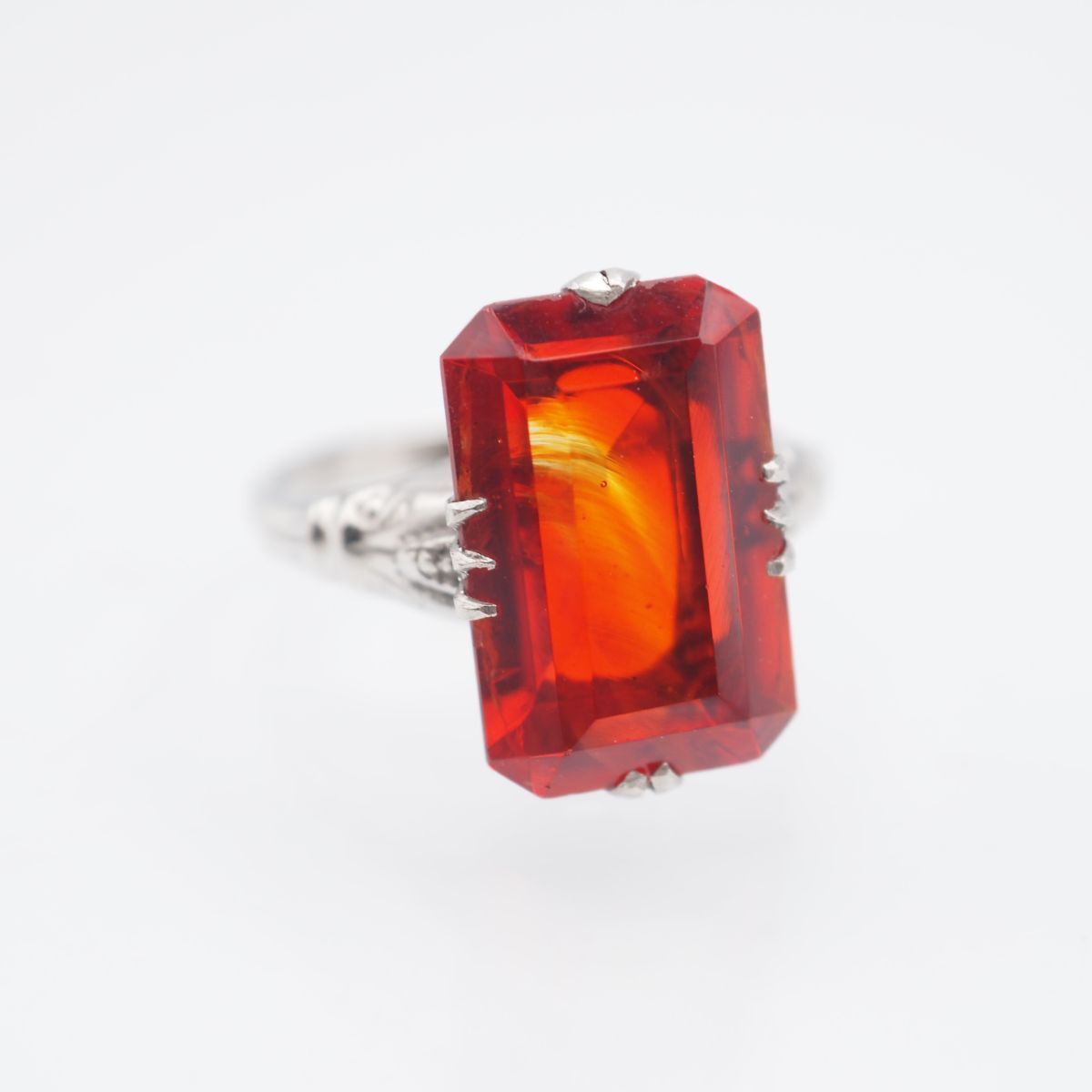 - G540 レッドガラス リング デザイン シルバー 指輪 アンティーク 13号
