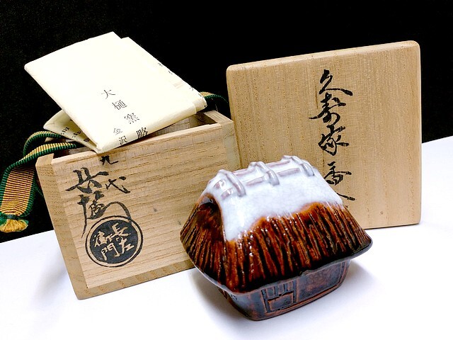 > 3QV売切!税無し☆九代大樋長左衛門★久寿家香合★共箱★茶道具★現状★現品限り★1010-1