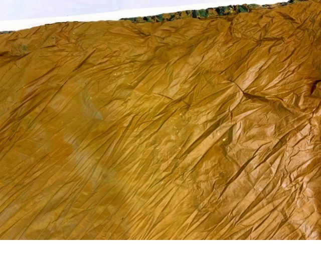 > #数量限定【米軍放出品】2006年 タープ テントシ ート 225cm×200cm ベタつき/匂いあり 迷彩 ウッドランド (60) HJ14DK-2-W#25