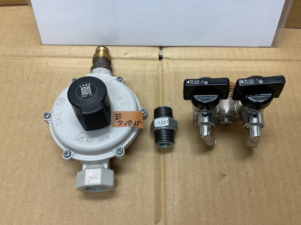 > レギュレーター#E 調整器 2口コック LPガス 中古品 LPG 点検チェック無し BBQ キャンプ 07/10/15