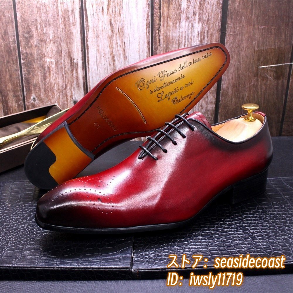 > 定価11万★超希少 ビジネスシューズ メンズ 職人手塗仕上げ 彫り 本革レザーシューズ 最高級 紳士靴 フォーマル 革靴 牛革 ブルー 26.0cm