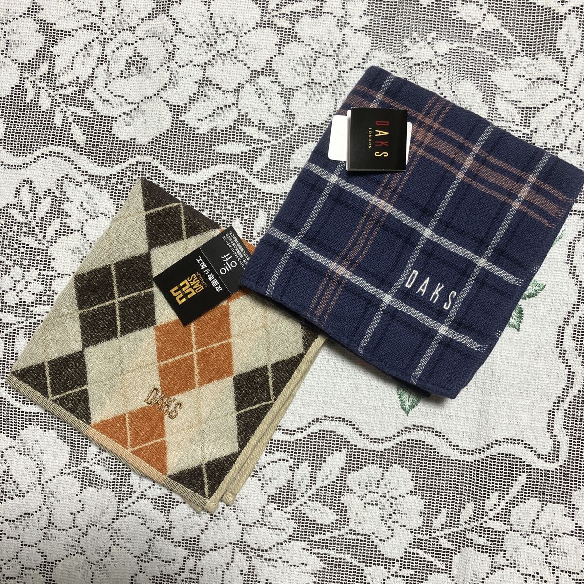 - 送料無料 DAKS ダックス タオルハンカチ2枚セット♪♪ アーガイル チェック ブランドハンカチ 素敵なメンズに 紳士用