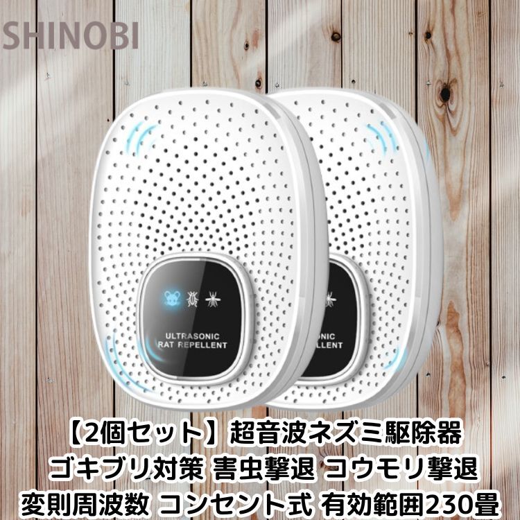 - 超音波ネズミ駆除器 ゴキブリ対策 害虫撃退 コウモリ撃退 変則周波数 安全無害 静音無毒 コンセント式 省エネ 有効範囲230畳 2個セット
