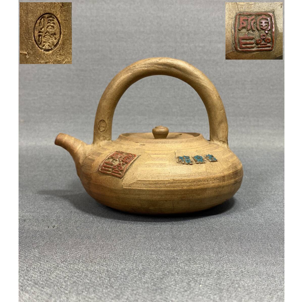 > 【風車】 倍衡 陶斎 作 古銭 彩色 白泥 急須 ▲在銘 陶磁器▲煎茶道具 中国美術 唐物