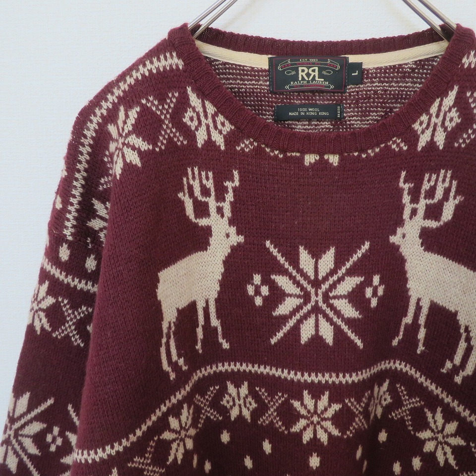 【ブランド】RRL RALPH LAUREN ダブルアールエル ラルフローレン【アイテム】ニット セーター【表記サイズ】L【平置き実寸】肩幅:約 53cm袖丈:約 65cm身幅:約 57cm着丈:約 66cm【状態】やや傷や汚れあり【備考】前身頃にほころび、穴がございます(画像5.6参照)【色】ボルドー系 ミックス【素材】画像をご参照ください。★当店の商品はすべてリユースアイテムとなります。特質上、些細なダメージは記載しておりませんので着用に問題のない使用感、着古した雰囲気などはご了承くださいませ。キーワード/アクイール/古着/used/ビンテージ/ヴィンテージ/昭和/レトロ/雪柄/トナカイ柄/希少色