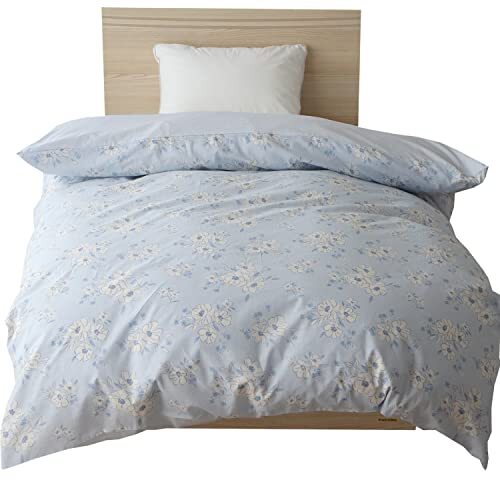 - メリーナイト 掛け布団カバー 「アネモネ」 ブルー シングル 約150×200cm 綿100% 吸湿性 通気性 心地よい肌触り オールシーズン
