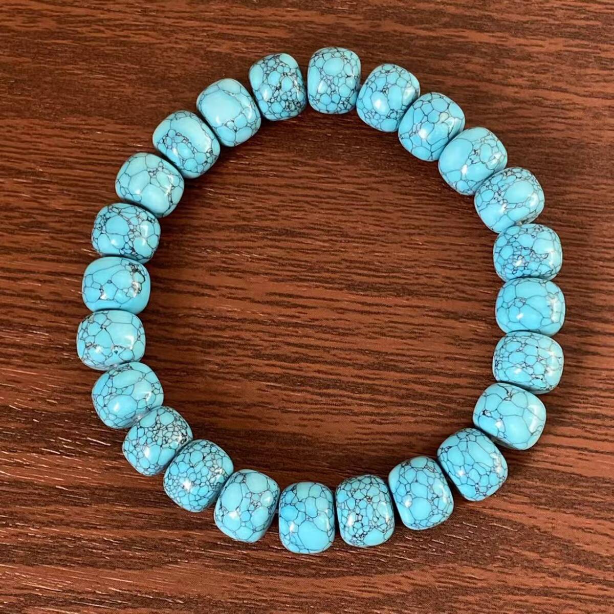 - 初期收集 綠松石 松石彫 老型珠 桶珠 高磁 腕輪 数珠 首飾 旧家藏出