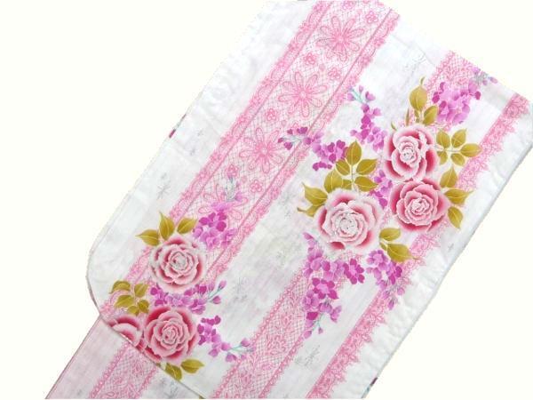- 女の子 女児 子供浴衣 白地に花 ピンク レース ラメ 150cm 新品 191