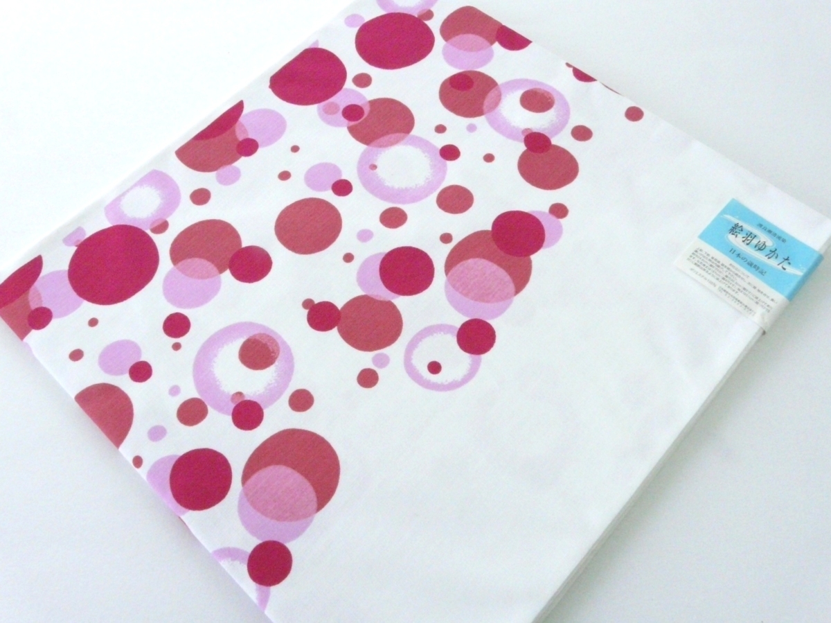 - 浴衣 反物 絵羽ゆかた 日本の歳時記 渡良瀬清流染 白地 ピンク 水玉 134