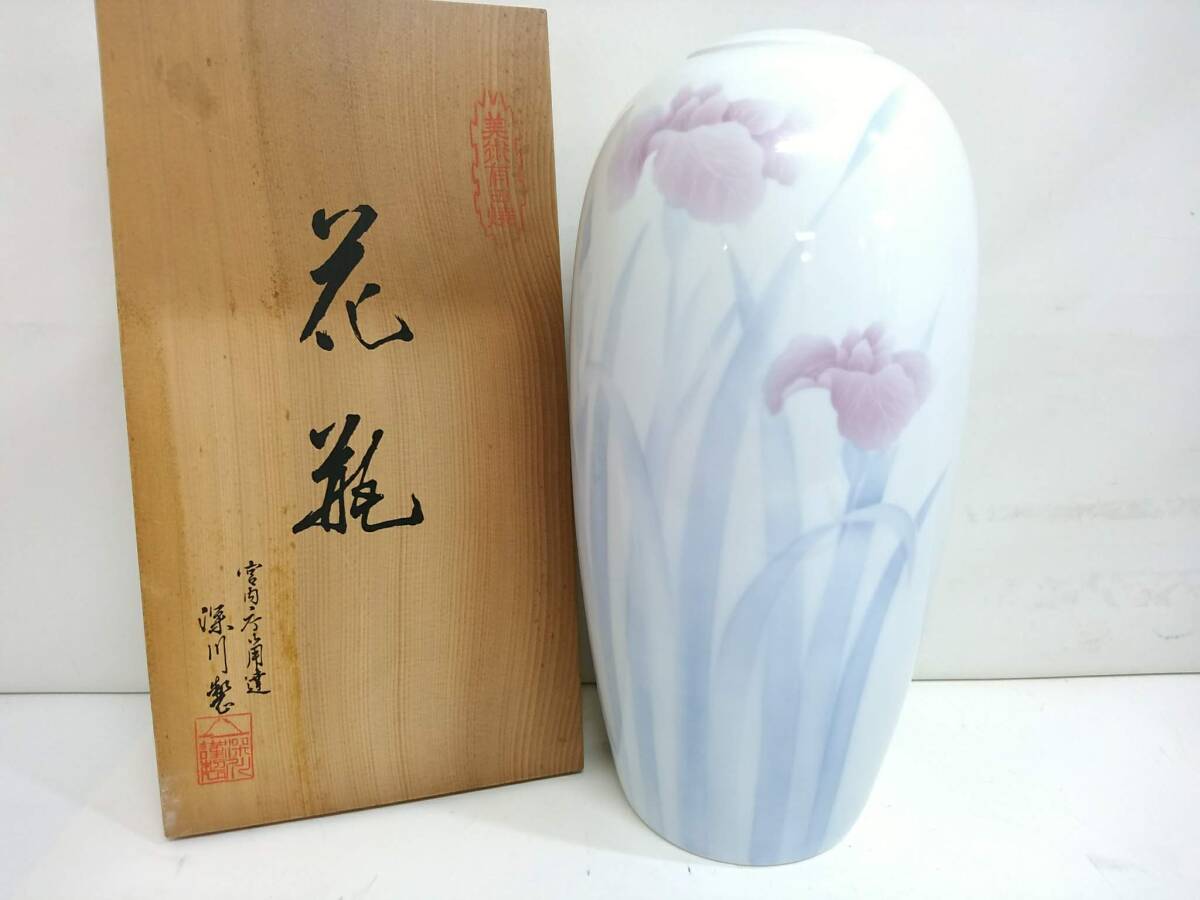 > 【うぶだし】宮内庁御用達 深川製磁 官窯染付 菖蒲 花瓶/高さ約43cm/重量約2.6kg/花器/花入/花生/華道具/床の間飾り/茶道具/LHQ3-12