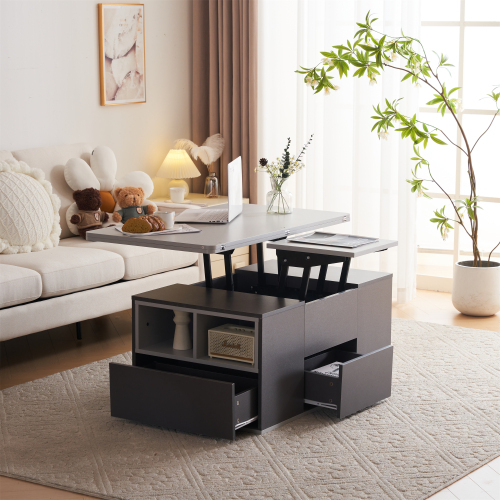 - テーブル センターテーブル 昇降式テーブル 高さ調節可能 幅100 折りたたみ 天板昇降 引出し 多機能 ダイニングテーブル【グレー】 KU779
