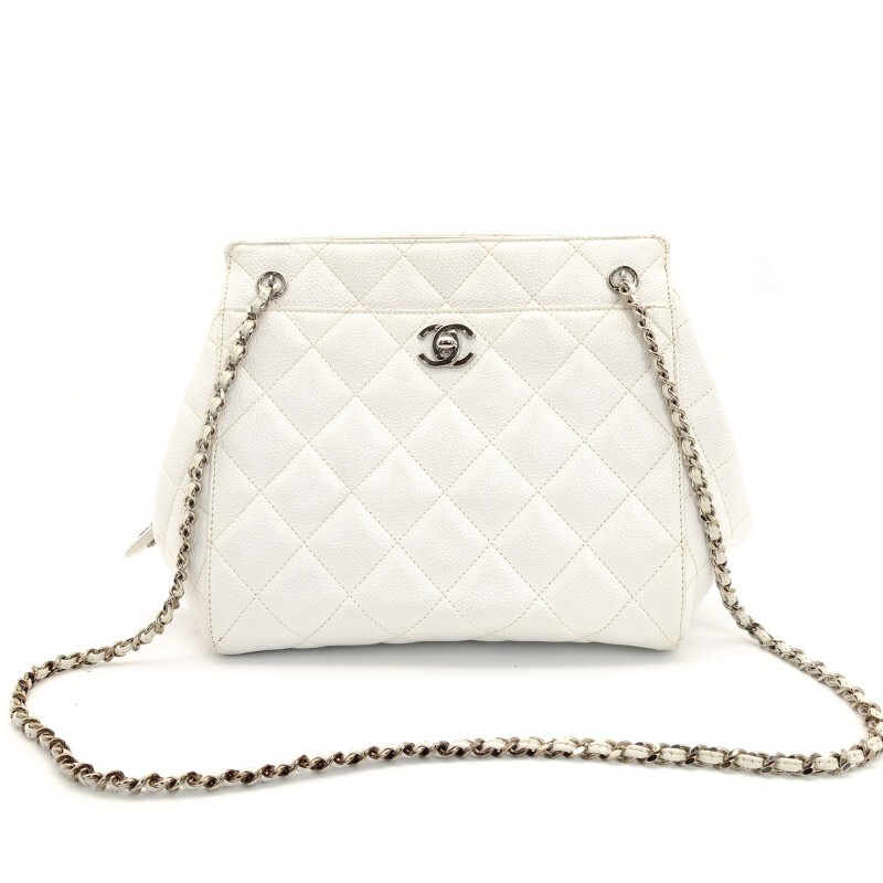 > シャネル CHANEL マトラッセ ホワイト チェーン ショルダーバッグ 白 レザー キャビアスキン 7-8-353