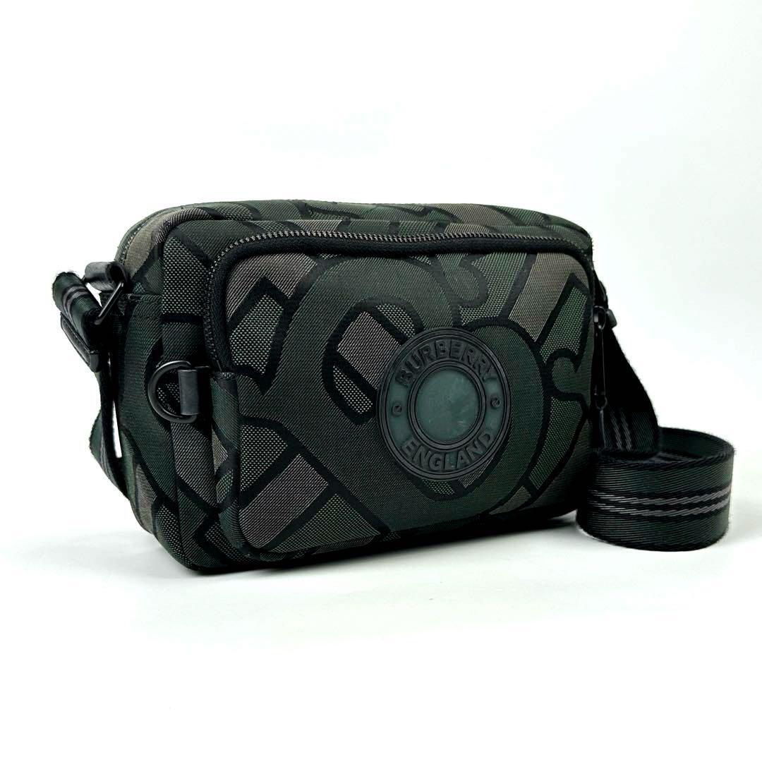 - 美品●BURBERRY バーバリー ショルダーバッグ パディ TB モノグラム サークルロゴ 斜め掛け キャンバス 黒色 ブラック グレー系 男女兼用
