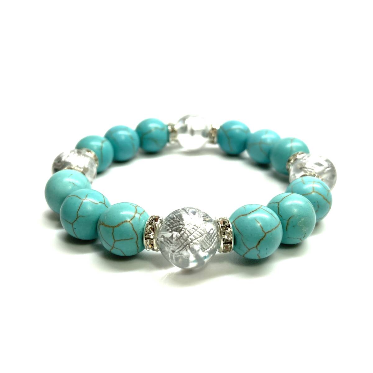 > 四神獣銀彫水晶×ターコイズ 12mm パワーストーン ブレスレット青龍 白虎 玄武 朱雀 運気上昇 お守り 金運 健康運 四神獸 四神相応 S #2