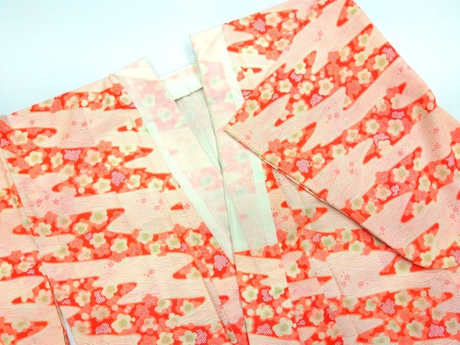 - アンティーク 長襦袢 仕立上り 着丈123cm モスリン 朱赤ピンク 梅と霞 レトロ 987 ggp