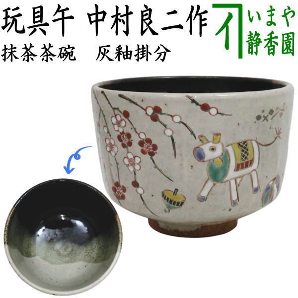 - 茶道具 抹茶茶碗 干支 午 干支茶碗 灰釉掛分 玩具午 中村良二作 干支午 御題明