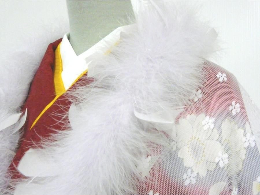 - ファーショール フェザーストール ケープ マラボー レース 羽毛 薄紫 小花 023