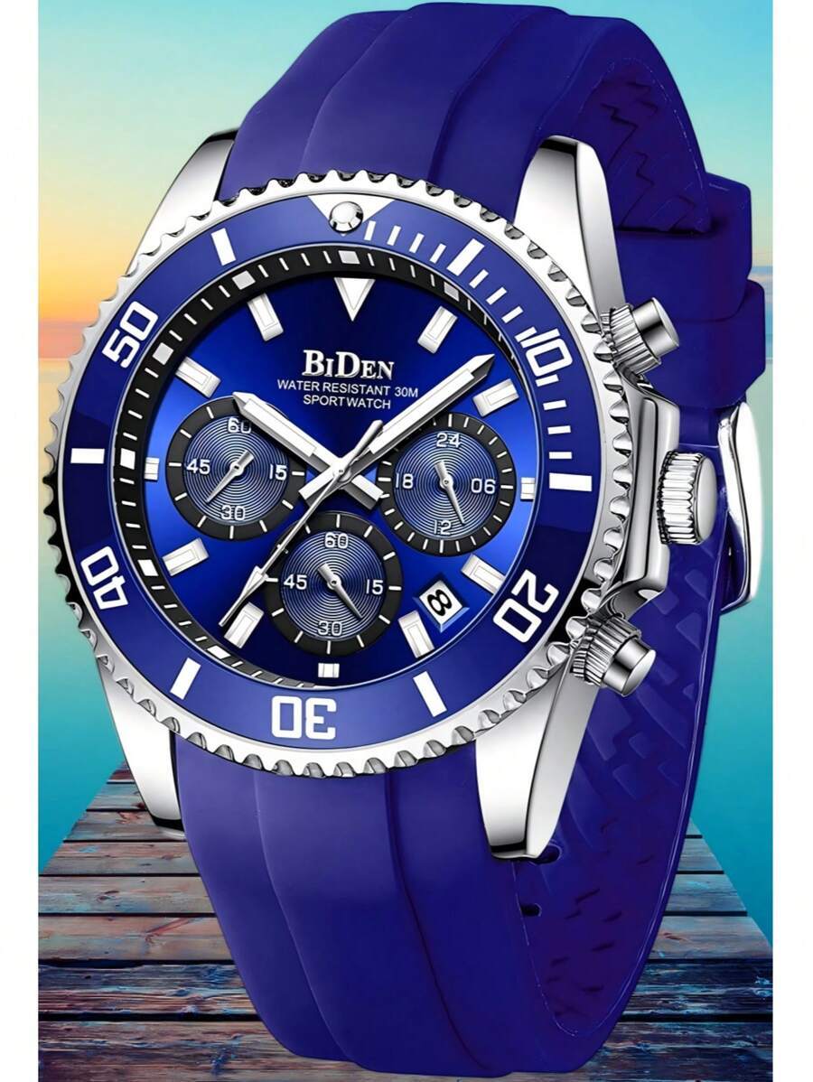 - 腕時計 メンズ クォーツ 1個 メンズ腕時計、ダイビングベゼル、クロノグラフ、防水、ルミナスデザイン、ラバーベルト、エレガントス