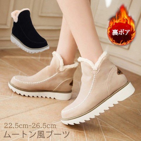 - レディース 靴 ショートブーツ スノーシューズ ムートン風ブーツ ぺたんこ 裏起毛 裏ボア 25.5cm(41) ライトブラウン