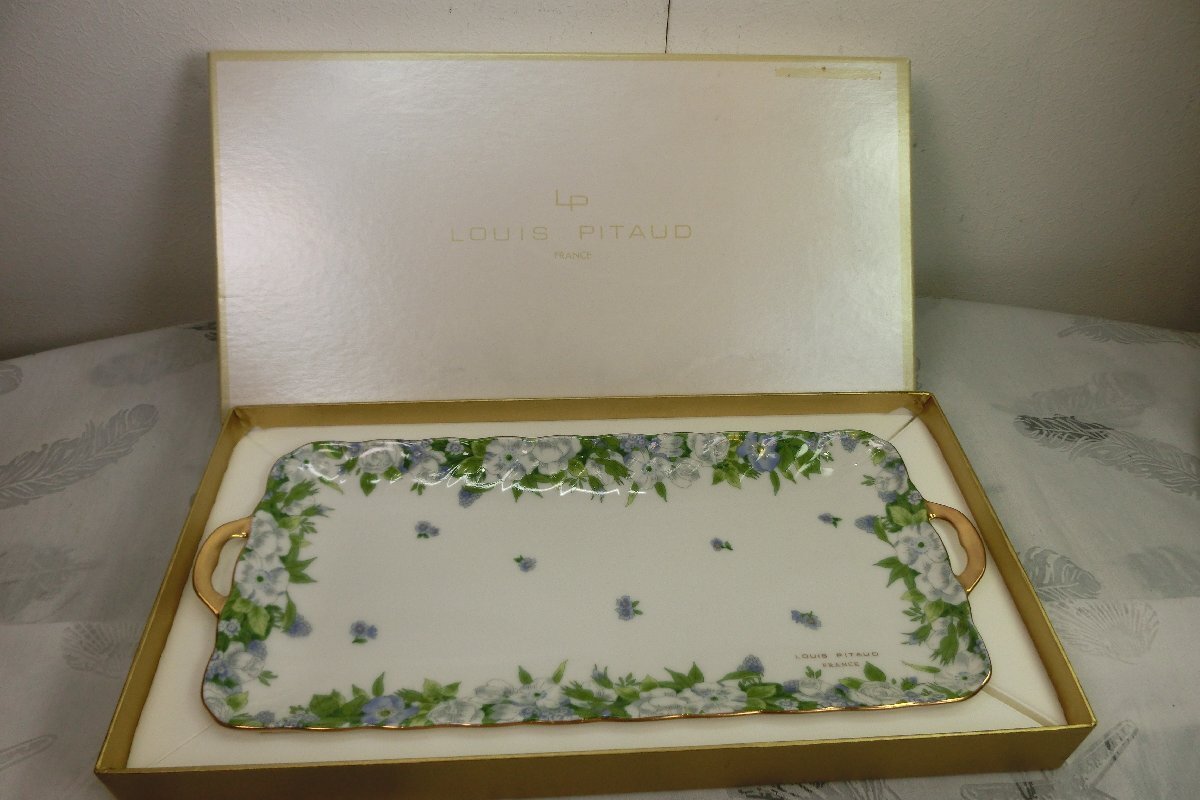 > ♪未使用品 フランス製★LOUIS PITAUD/ルイ・ピトー★花柄デザインの金色取っ手付き長皿(サンドイッチプレート)