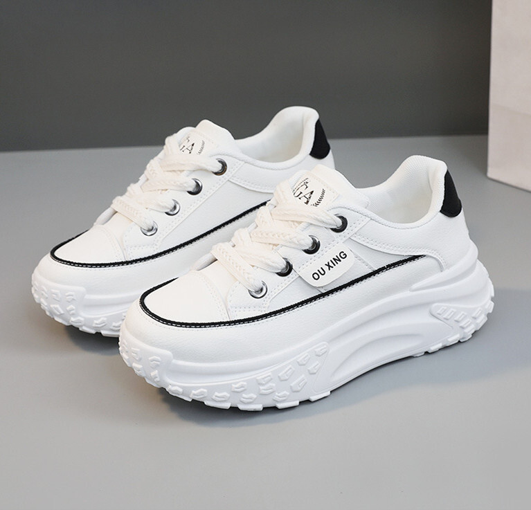 - 厚底スニーカー レディース 運動靴 軽量 美脚 インヒールシークレットシューズ 疲れにくい レースアップ 身長アップ ホワイト 24.0 cm