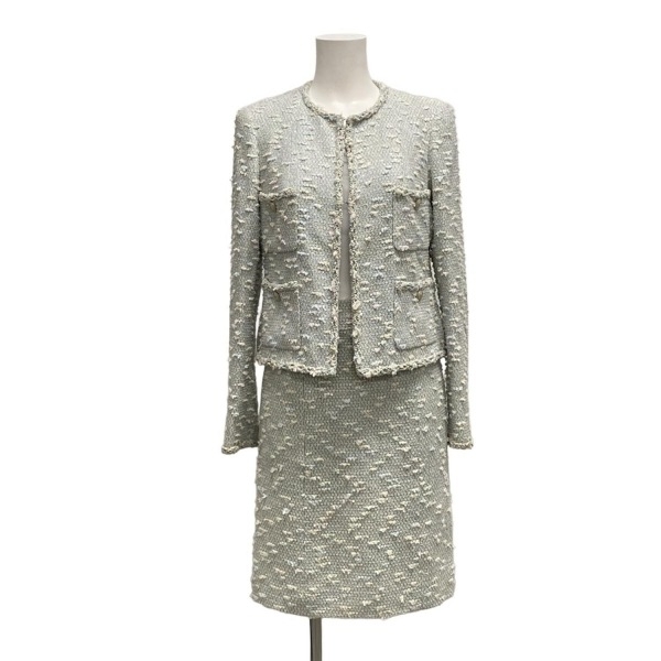 > シャネル CHANEL スカートスーツ サイズ38 M P29904/P30118 ナイロン ライトブルー×アイボリー×マルチ レディース 07C レディーススーツ