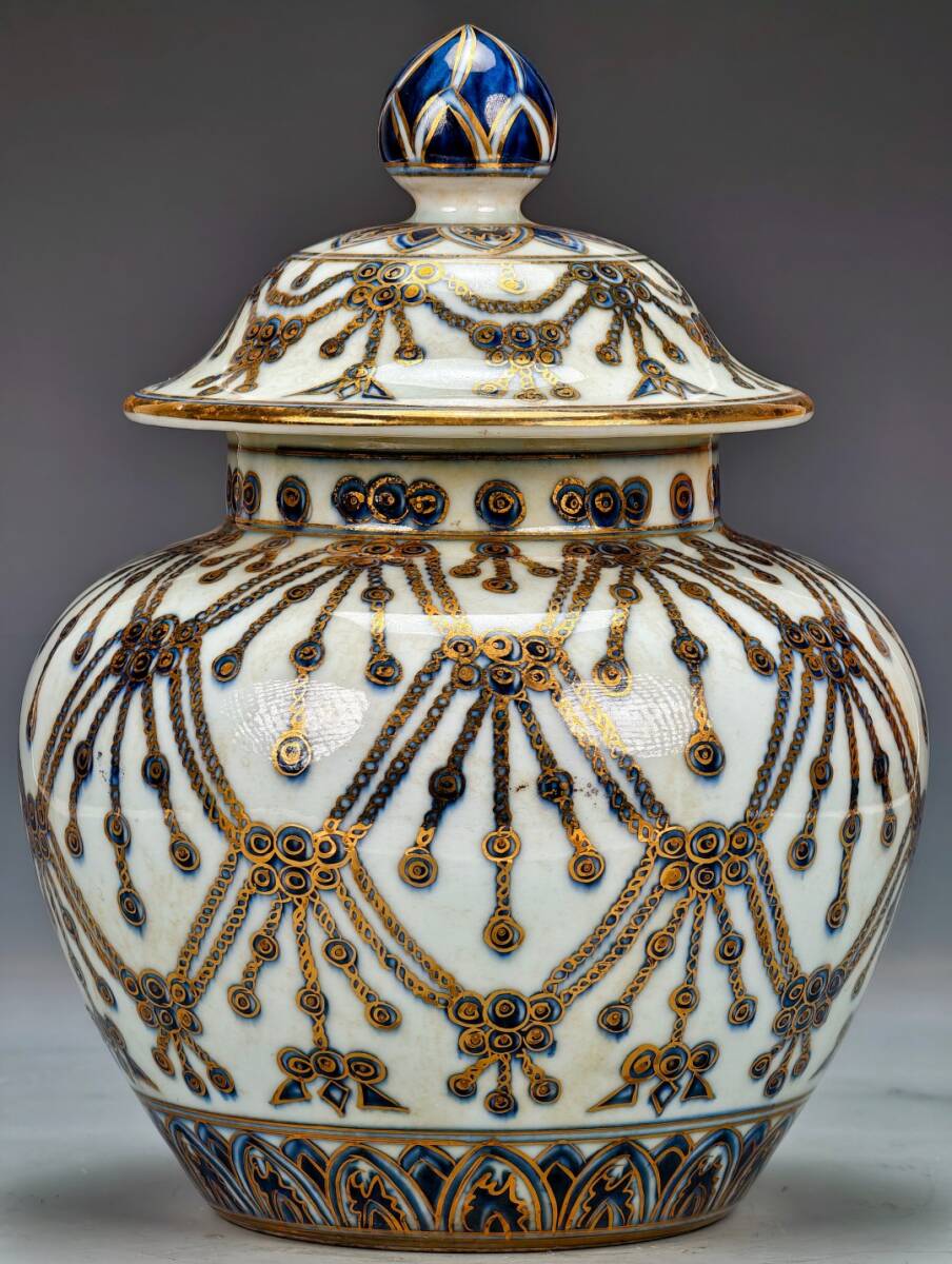 > PTA#0815【3.1】中国骨董 人間国宝 磁器【【永楽制】青花描金満工珠簾紋蓋缶】工芸品 施釉陶 青花磁 陶芸 精美彫 置物 收藏品