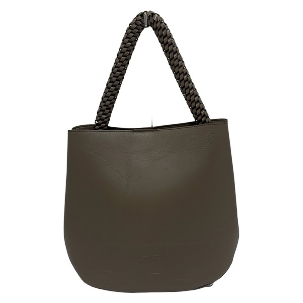 - ヒロフ HIROFU ハンドバッグ - レザー グレーベージュ 編み込みハンドル バッグ