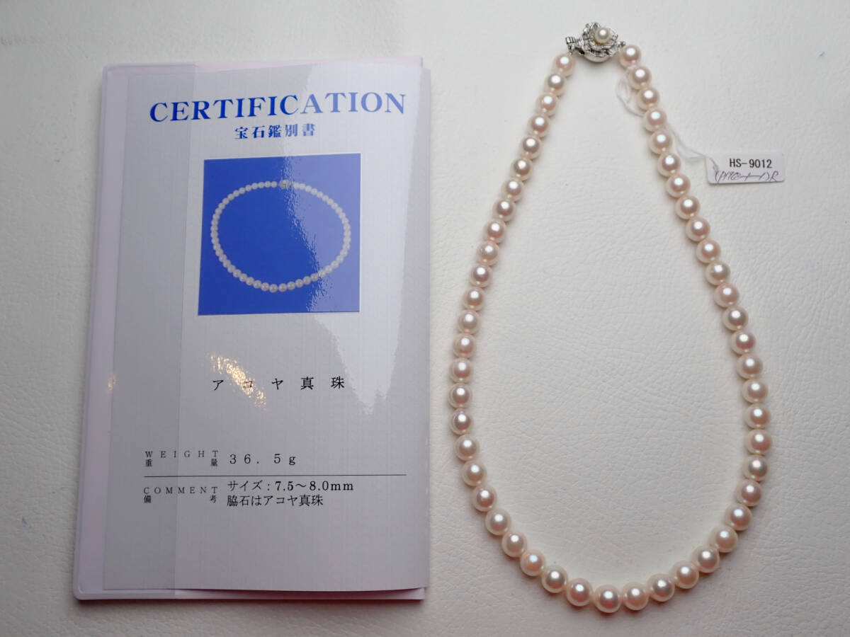 - 14●アコヤ真珠 ネックレス 7.5~8.0mm 36.5g 鑑別書付