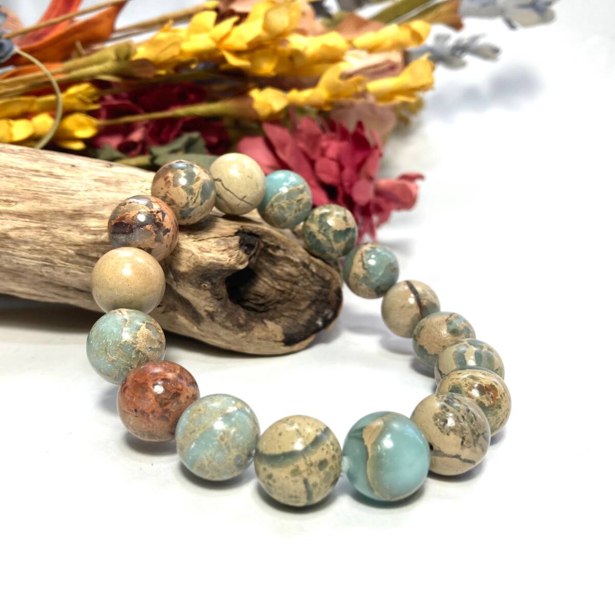 - インプレッションストーン パワーストーン ブレスレット 12mm 天然石ブレス シンプル 数珠ブレス メンズ・レディース 男性 女性 癒し