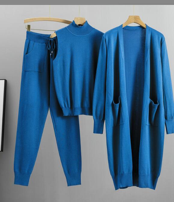 - M1018 パンツスーツレディース● 着心地抜群 20代30代40代 ● 新作 3点セット 秋冬 ブルー