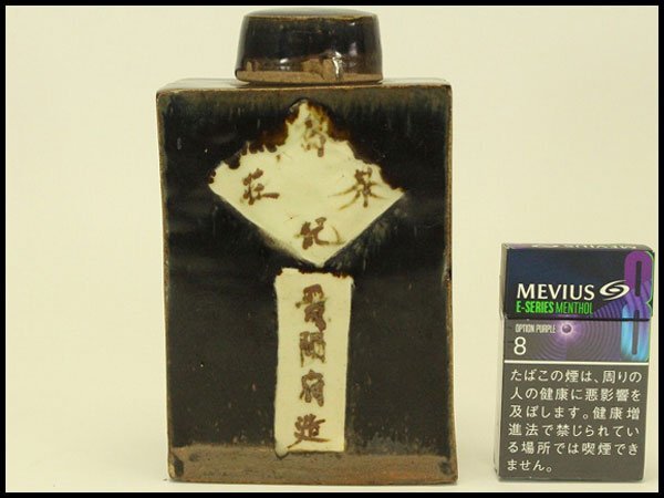 - 【銀閣】中国美術 鉄釉 四方 茶壷 煎茶 旧家蔵出 送料無料(LC978)