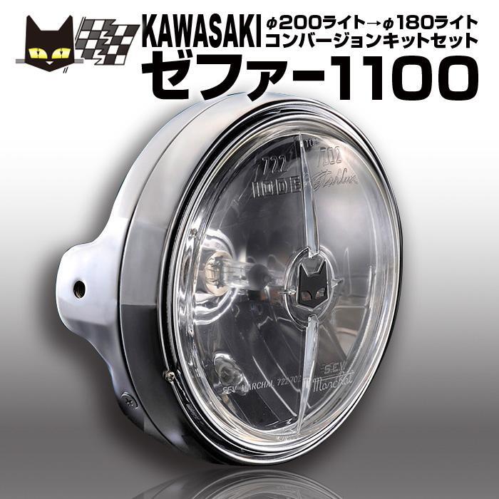 - カワサキ ゼファー1100 φ200ライトに装着 マーシャル722・702 クリアーレンズ メッキケース 汎用フルキットセット 8418/6038