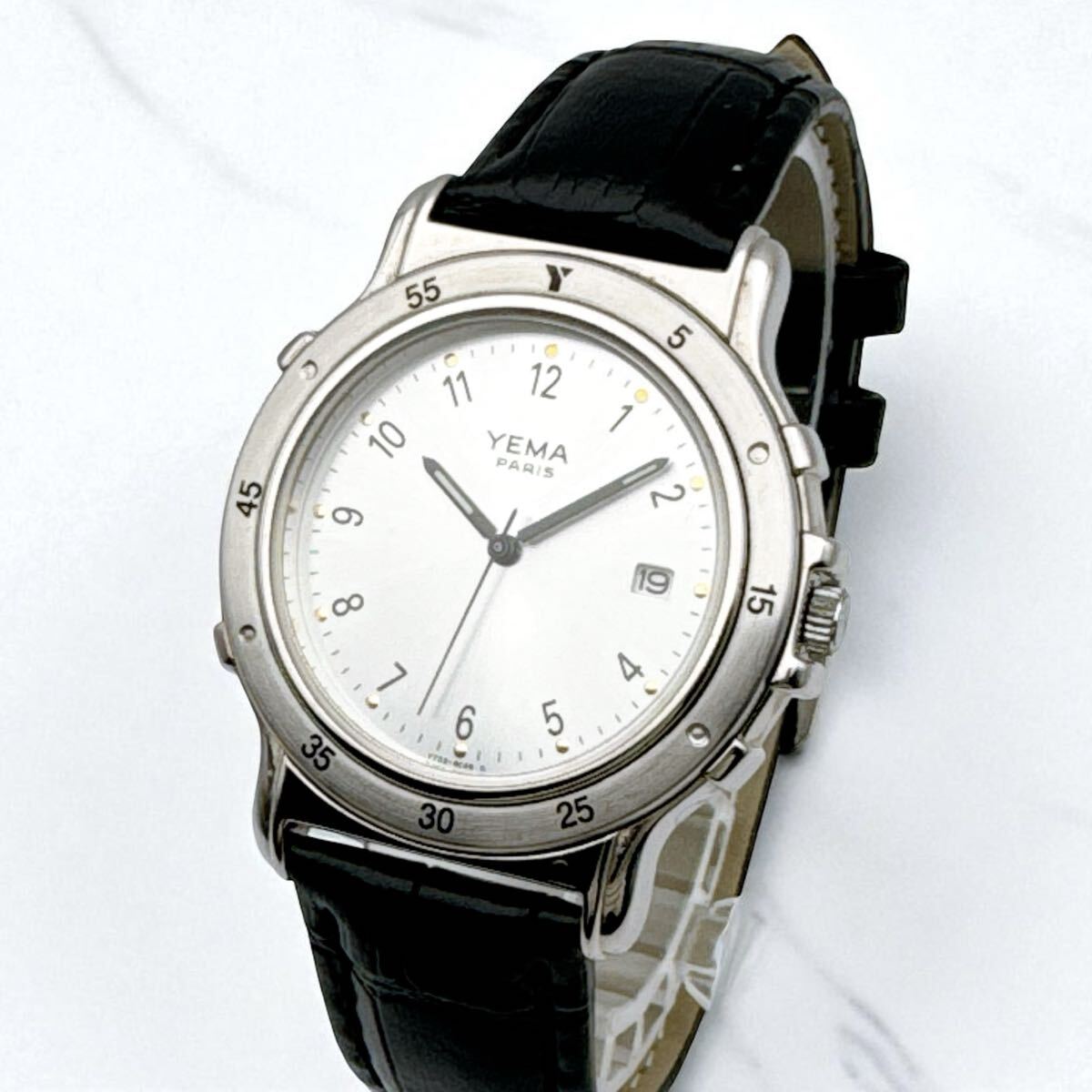 - 【希少稼働品】YEMA イエマ ビンテージ デイト 腕時計 メンズウォッチ シルバー クォーツ ホワイト文字盤 ラウンド 3針